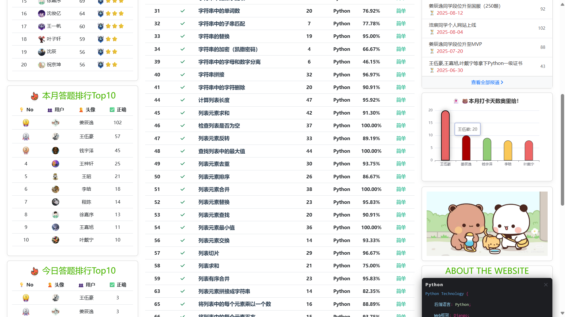 - 包含“打卡天数榜”“奥力给排行榜”,通过打卡和正向激励,培养持续学习习惯。