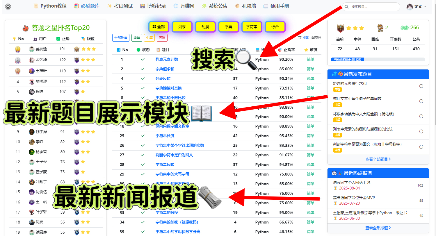 - 能直接看到小熊老师最近更新的题目,不用再通过翻页看序号找新题啦,超方便!