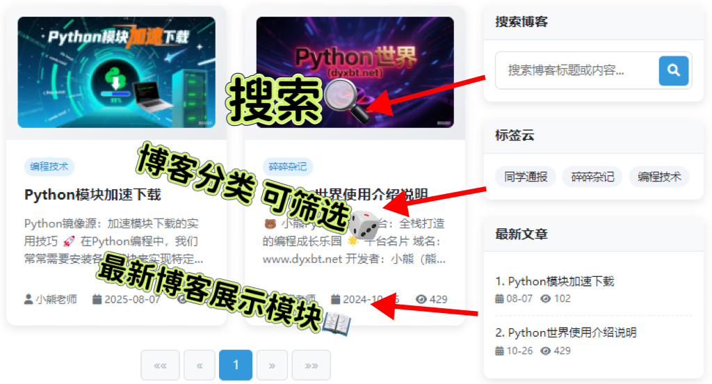 - 从之前简单朴素的界面,升级为支持“最新、最热、搜索、标签分类”等全方位展示的界面;
