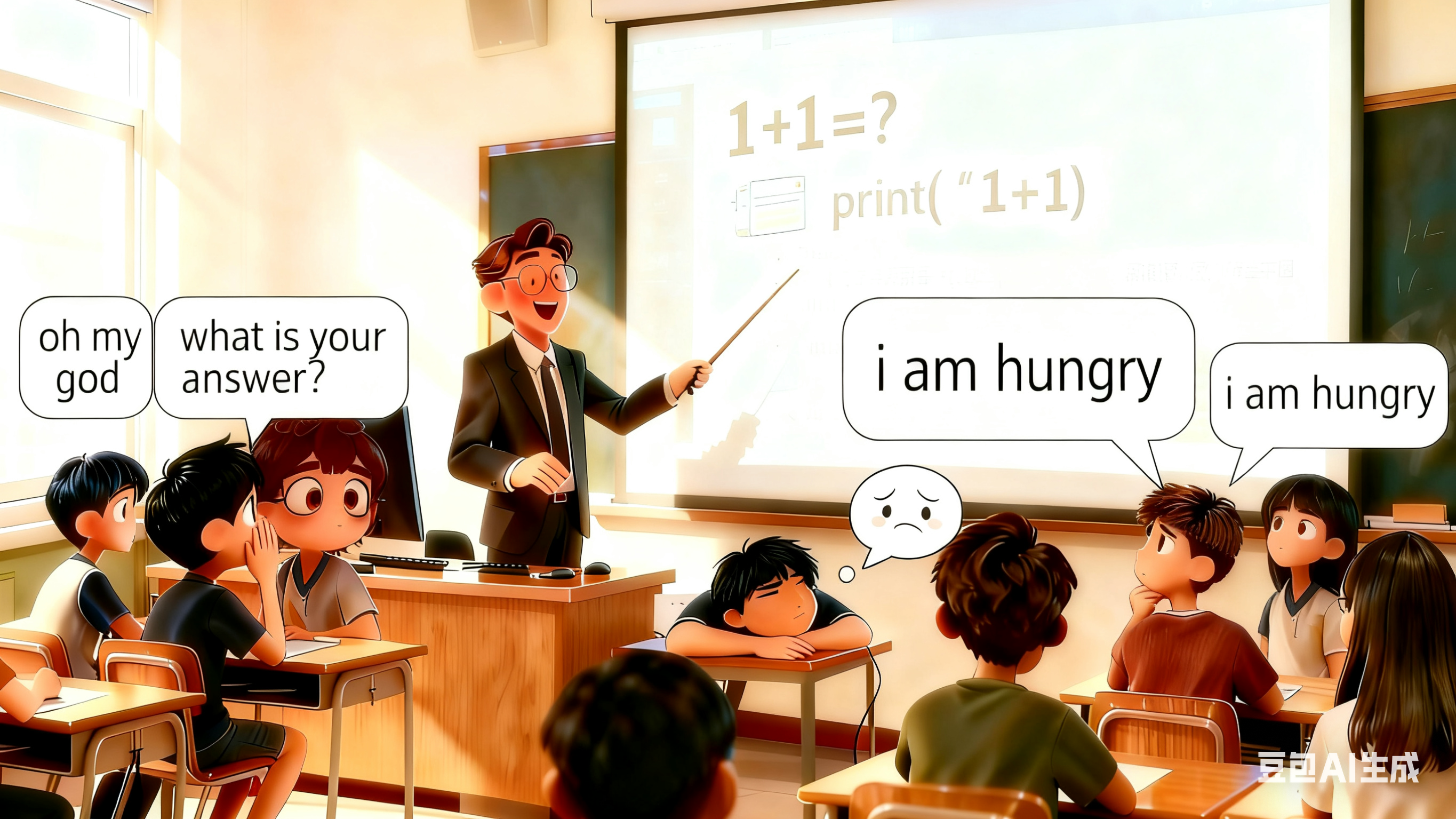 Wang Wuhao: Teacher, are you looking down on(小看) us? 1 plus 1 is definitely 2!