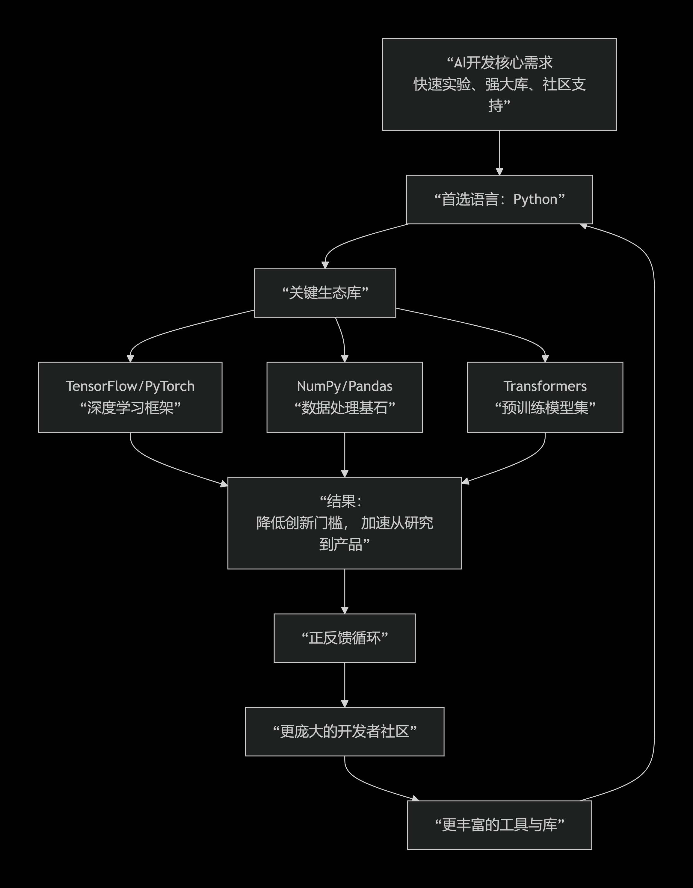 Python并非性能最快的语言,但它的简洁、可读性和庞大的科学计算库,使其成为了AI研究的“通用语”。从训练大模型到处理数据,Python生态提供了最完整的工具链。